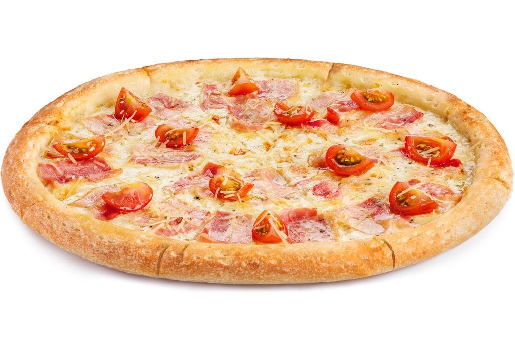 Сливочно-чесночный соус, бекон, сыр моцареллла, томаты
