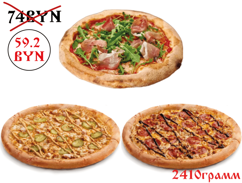 Двойная Пепперони, прошутто-фунги, царская- 2970г.